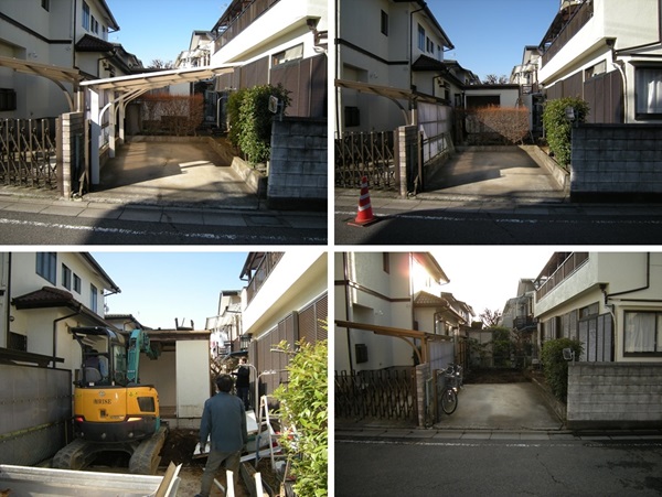 新車は車幅が広くなるそうで、40cmブロックひとつ分縦に撤去。